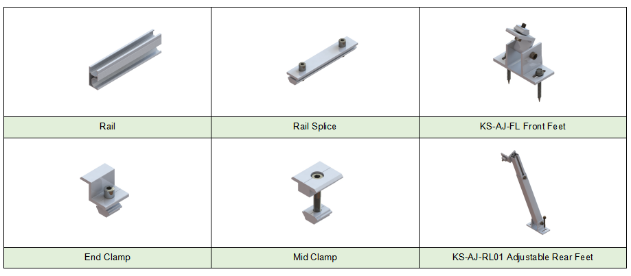 KS-AJ-RL01: Pata trasera regulable 10-15° KS-AJ-RL02: Pata trasera regulable 15-30° KS-AJ-RL03: Pata trasera regulable 30-60° |
