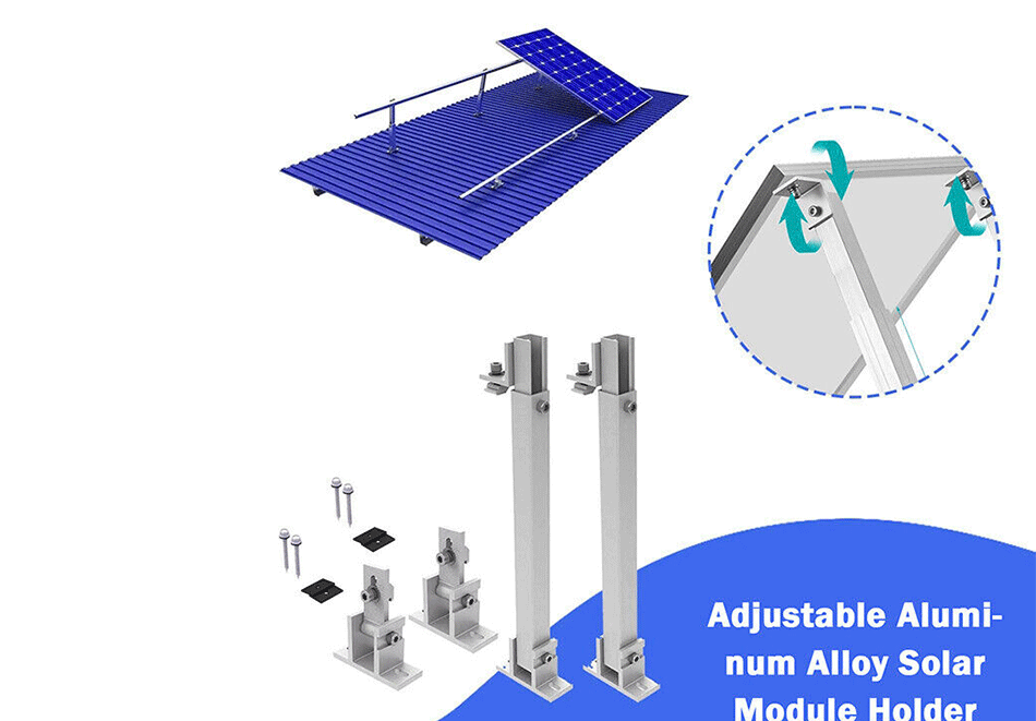 El sistema de montaje de techo solar ajustable se adapta fácilmente al techo debido a su ángulo de inclinación variable y opciones de base . Puede ser de inclinación fija o ajustable, cumpliendo con los ajustes específicos del proyecto para optimizar la producción solar. Este diseño innovador elimina la necesidad de corte y soldadura en el sitio, presenta un bajo costo y una instalación rápida.