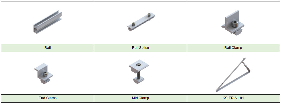 instalar sitio azotea plana velocidad máxima del viento ≤ 60 m / s carga de nieve ≤1,4KN / M2 ángulo de inclinación 0 grados módulo aplicable enmarcado o sin marco normas AS / NZS 1170, ASCE 7 - 10, JIS2017 material AL6005 - T5, SUS304 Anti - corrosivo anodizado color plata garantía 10 años de garantía