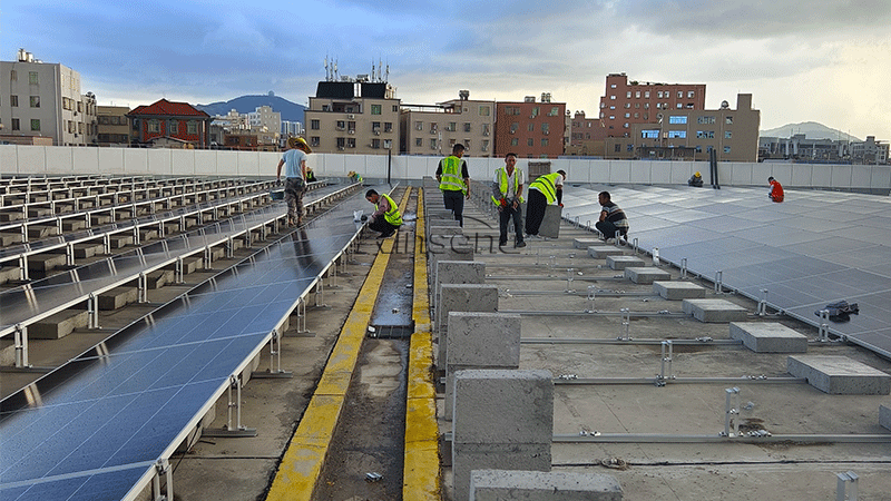 En términos de diseño, es conveniente y rápido de arreglar, y el panel instalado por el sistema de soporte de techo plano es fácil de limpiar, especialmente en invierno cuando es necesario quitar la nieve del panel. Las ventajas de este sistema de balasto solar de techo plano se vuelven aún más prominentes. Adoptando la instalación delantera y trasera estilo accesorio, haciendo que la instalación sea más segura y eficiente, reduciendo los costos de construcción. Elegiremos razonablemente diferentes esquemas de lastre para diferentes entornos regionales, cargas de nieve y velocidades del viento.