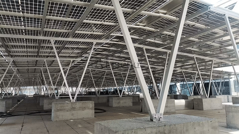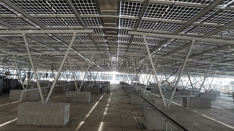 Sistema de montaje en techo BIPV ,Proyecto de techo BIPV 700KW de prueba recién instalado y aprobado, en China. Sistemas de montaje fotovoltaicos en cubiertas planas .