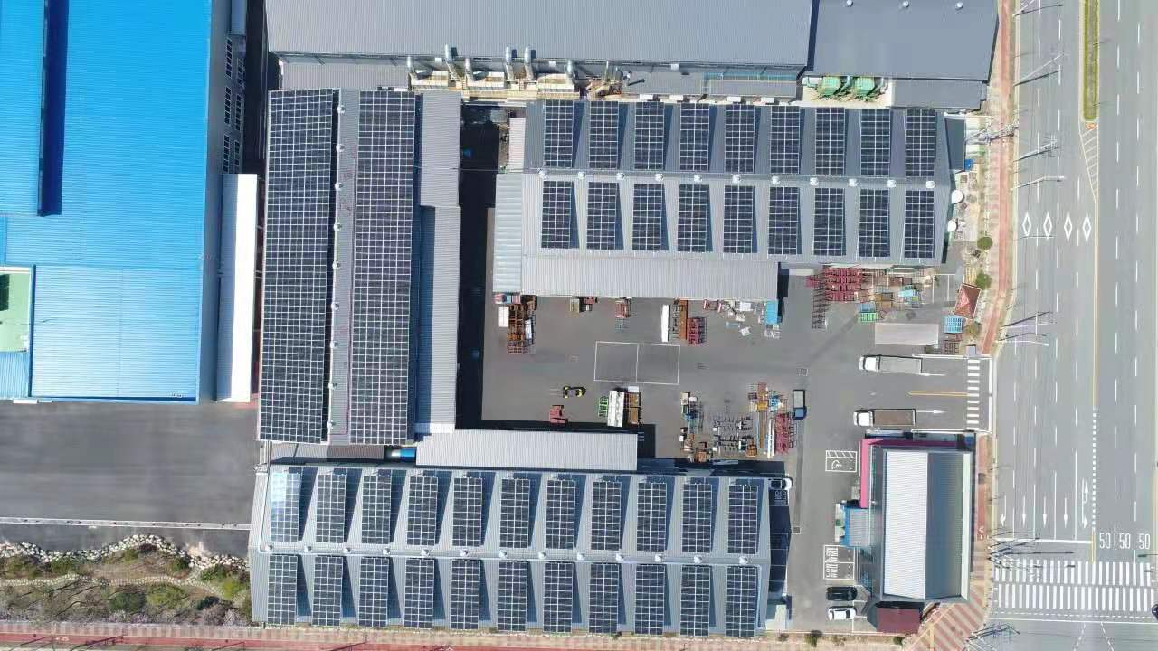 recientemente kinsend ha completado la oferta de sistema de montaje solar con la estructura del triángulo que funciona para unTecho de color azulejo de color, inclinado en un centro comercial en Corea. La capacidad del proyecto es tan grande como 570kw.