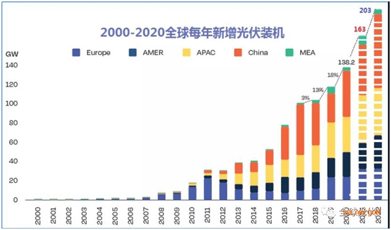 Según el pronóstico de la energía solar Europa, el nuevo PV global llegará a 163 GW en 2021, 203 GW en 2022, 225 GW en 2023, 239 GW en 2024 y 266 GW en 2025. El pronóstico más optimista es que para fines de 2025, la generación global de energía solar acumulada alcanzará 2100GW.