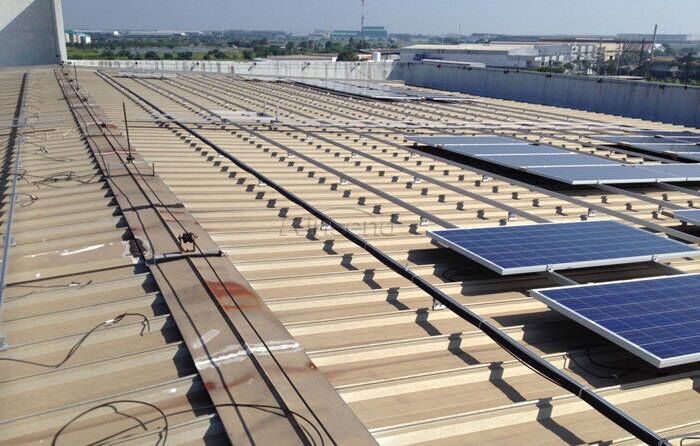 El uso de abrazaderas no dañará la estructura original, ni provocará fugas de agua en el techo ni dañará la estructura en general. Se debe verificar cierta información antes de la instalación: 1. altura del techo 2. ángulo de inclinación del techo 3. tamaño de teja de acero de color 4. dirección del flujo y posición de disposición del panel.