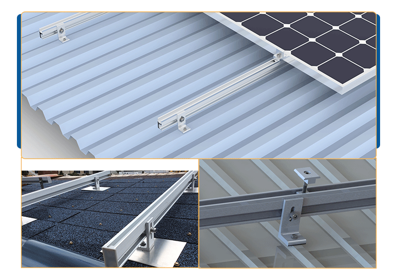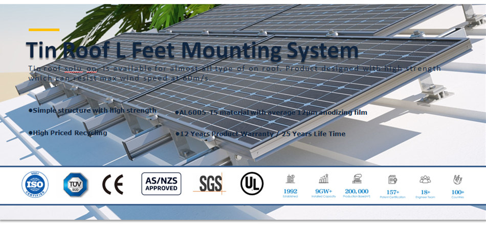 Ligero Pie L Ventaja de precio, venta caliente en áreas de baja velocidad del viento, Instalado directamente en el montaje solar de techo de metal trapezoidal, La instalación eficiente reduce tiempo de construcción.