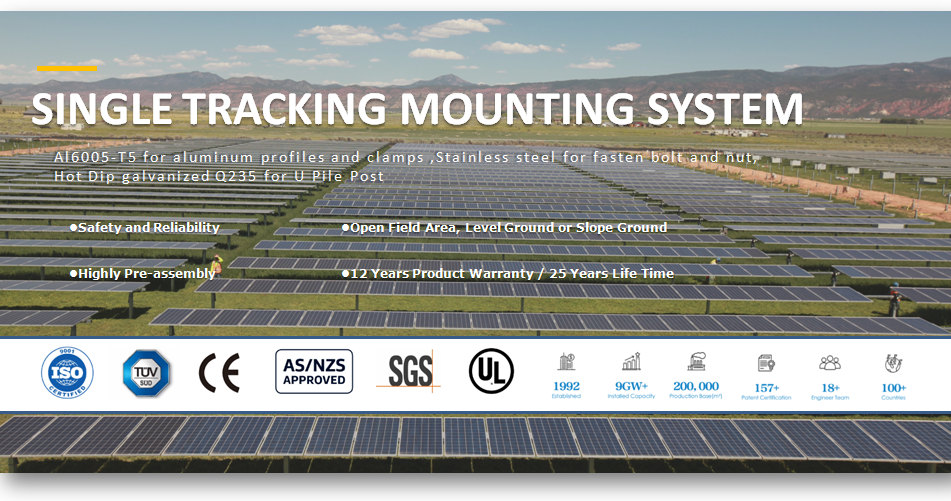 El sistema de seguimiento solar único mejora la eficiencia de generación de energía . El sistema fotovoltaico de soporte de seguimiento de una sola fila puede adaptarse a la pendiente del 20% de las laderas norte y sur. La eficiencia general de generación de energía aumentó en un 25% -35%. Toda la estructura tiene una resistencia a la corrosión extremadamente fuerte durante toda su vida útil.