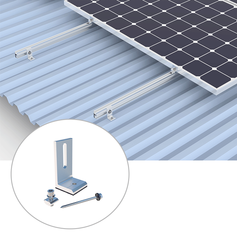 Kensend's El gancho de los pies de tipo l alargado es ampliamente utilizado en Corea y Europa para trapezoidal metal Techo PV PV sistemas de montaje. El aumento Techo de lata solar l gancho Ventaja para la disipación de calor del panel solar, porque El panel solar se mantiene mayor. Trafvezoidal El techo de metal es el tipo de placa corrugada comúnmente utilizada en techos de muchos edificios en Presente. L-pie El esquema es adoptado en trapezoidal Sistema de montaje en el techo de metal , que es conveniente para la instalación y el encendedor en peso total.