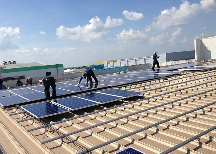 Proyecto de techo solar 872kw , Vietnam se completó, la hoja de metal estaba bloqueada por la vertical Bloqueo de borde Accesorio de aleación de aluminio, y todo. PV PV sistema de soporte Logrado el efecto de instalación más estable fijando la L-LET y ferrocarril solar Porque la Soporte de aleación de aluminioEs ligero en material, la carga de la hoja de metal se reduce. La longitud personalizada puede eliminar la necesidad de soldadura y corte en el sitio, asegurando así la alta resistencia a la corrosión, la resistencia estructural y la estética del producto de la fábrica a la instalación Sitio.