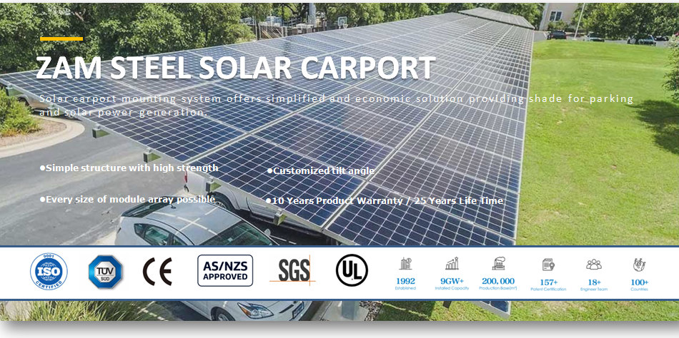 El diseño aerodinámico del  sistema de soporte de cochera de acero  ZAM  reduce la obstrucción de los pilares, reduciendo los obstáculos para la posición de estacionamiento del vehículo y proporcionando una gran flexibilidad. Usar materiales de acero más gruesos para reducir el número de columnas y facilitar la instalación